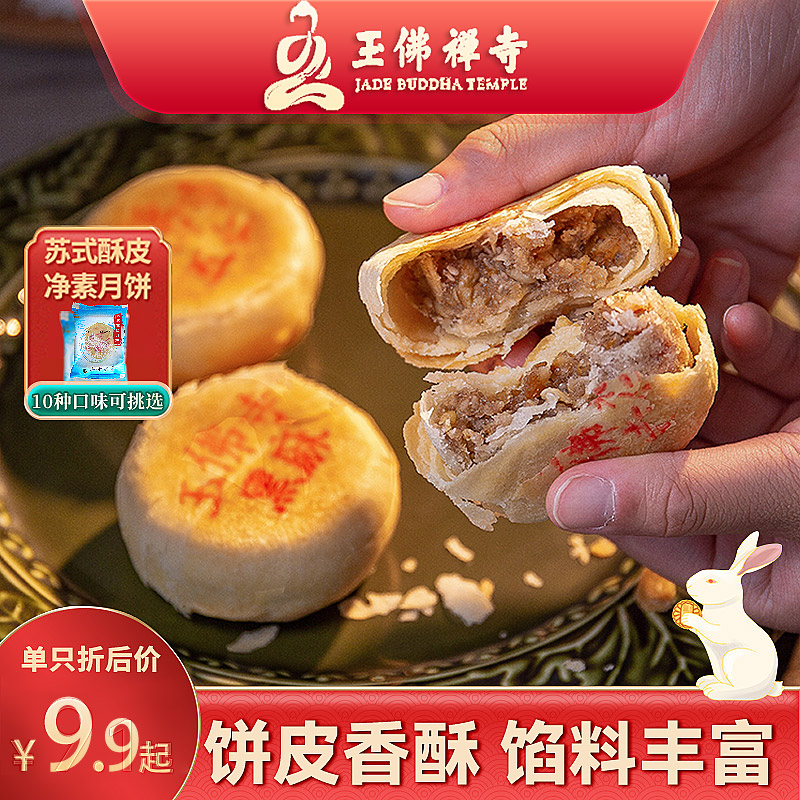 【特价】正宗上海玉佛寺净素月饼苏式酥皮五仁月饼海苔豆沙散装