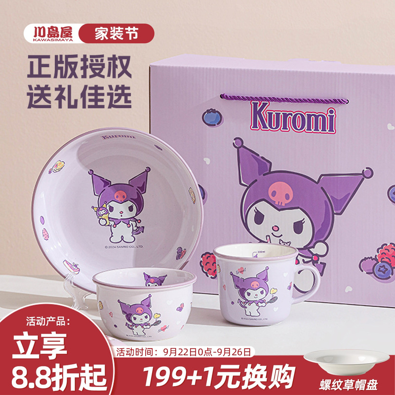 川岛屋三丽鸥餐具套装可爱一人食碗具碗碟礼盒儿童生日礼物送女孩