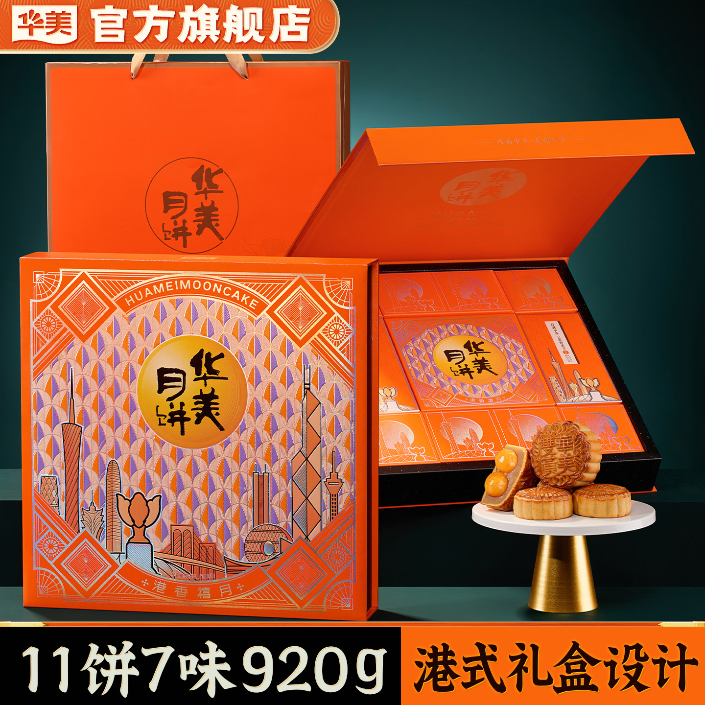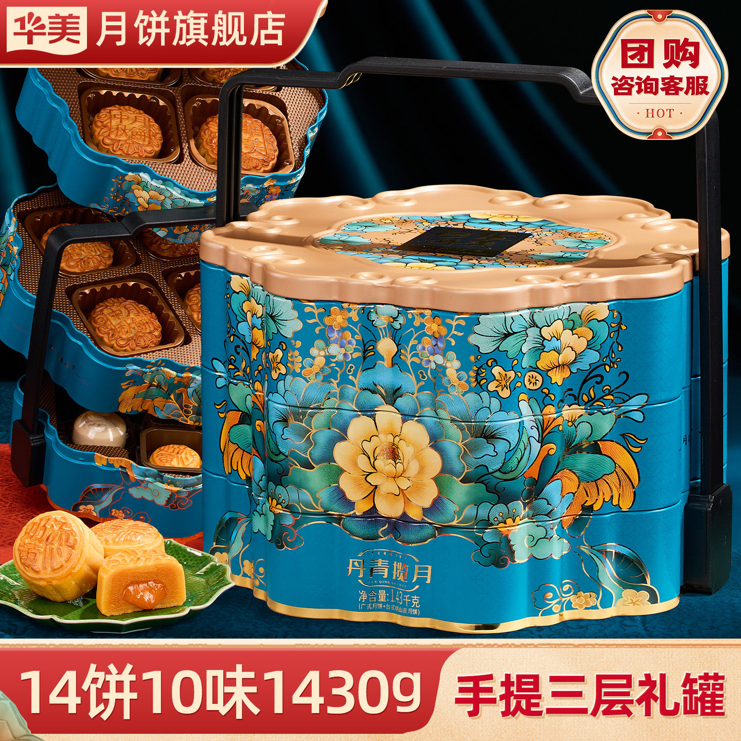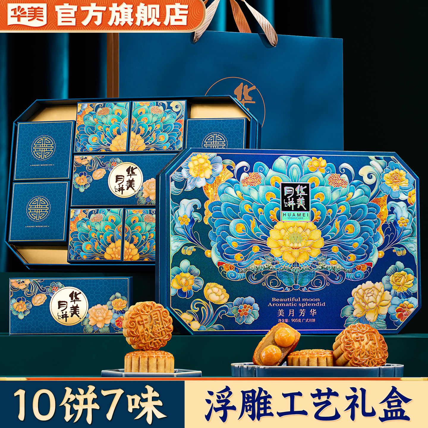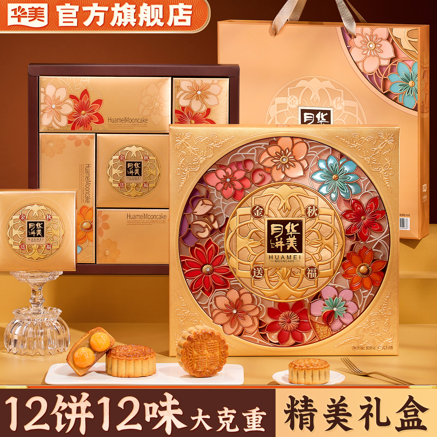 华美广式蛋黄莲蓉豆沙中秋月饼礼盒装糕点点心零食福利团购