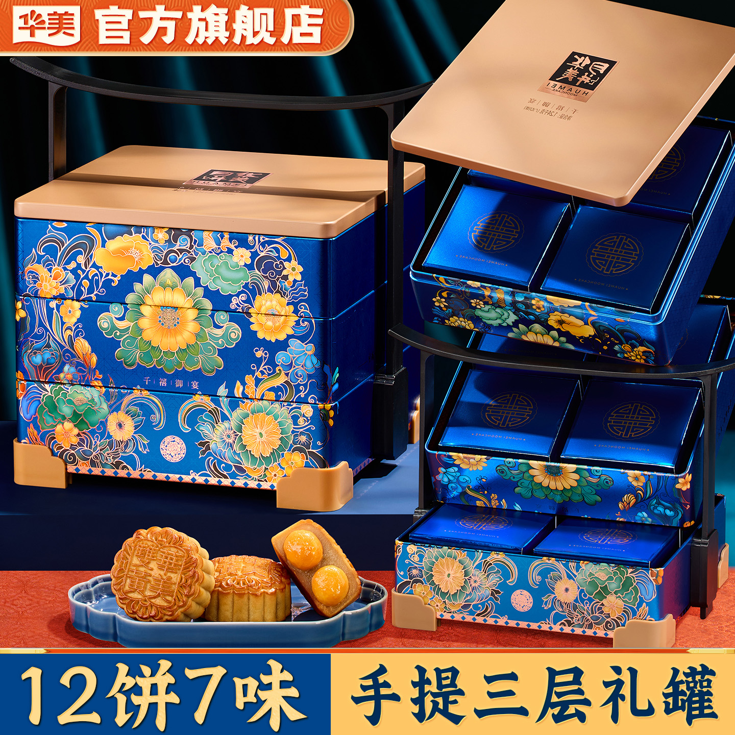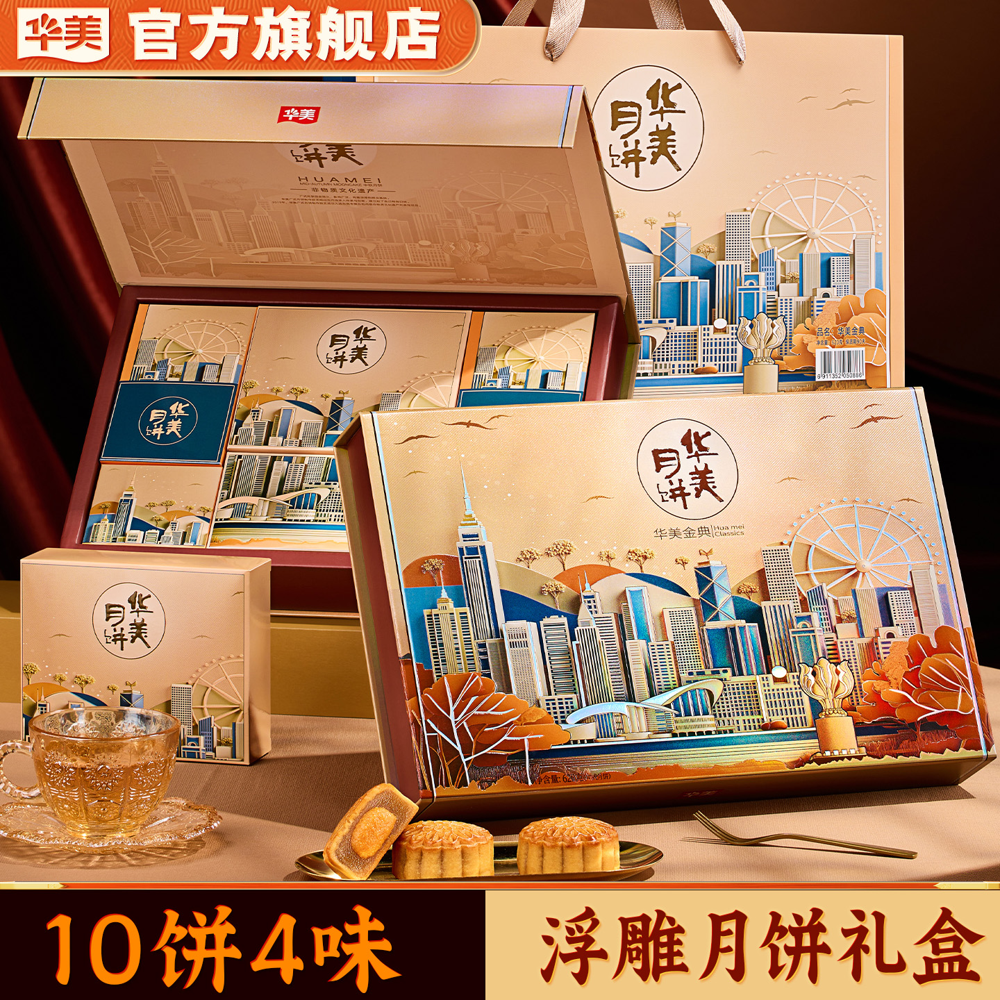 华美月饼经典苏式伴手礼迎凤团圆酥皮中秋送礼盒装传统糕点