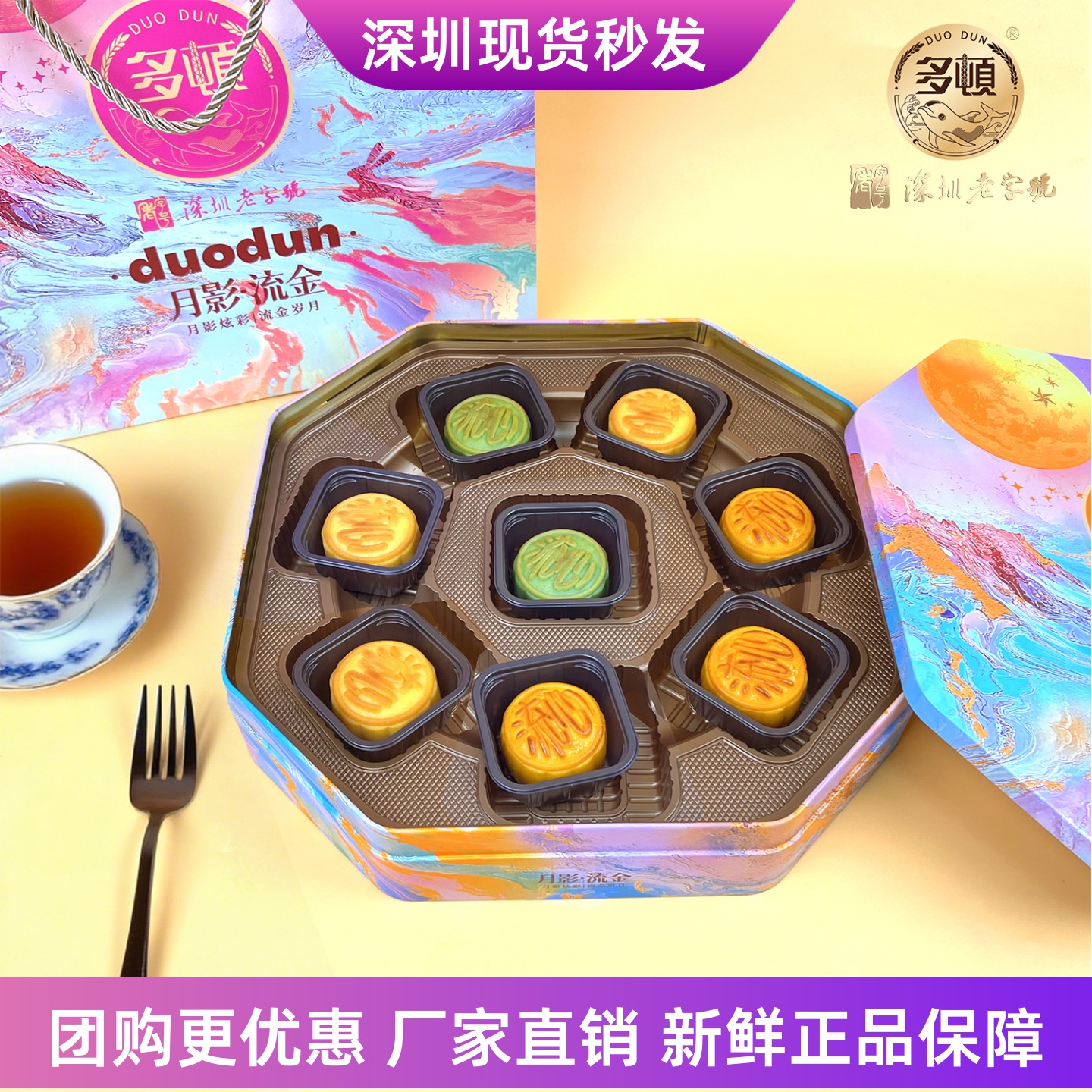 金尊流心奶黄月饼双层铁盒装广式蛋黄莲蓉多口味中秋水果月饼送礼