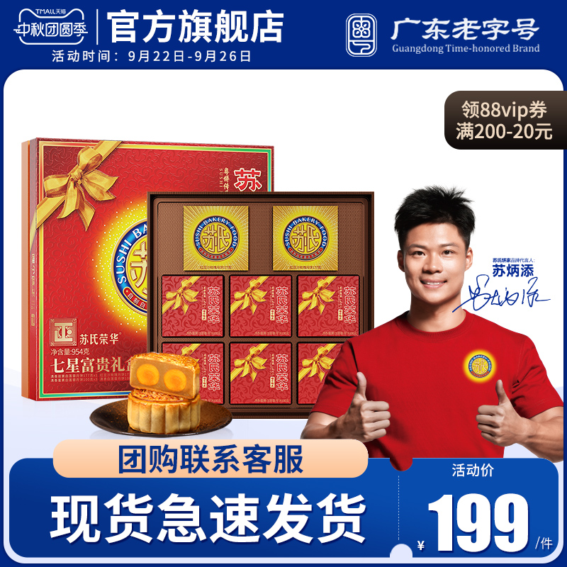 元朗荣华七星伴月月饼1480克广式月饼公司团购礼盒中秋节送礼