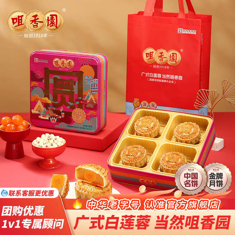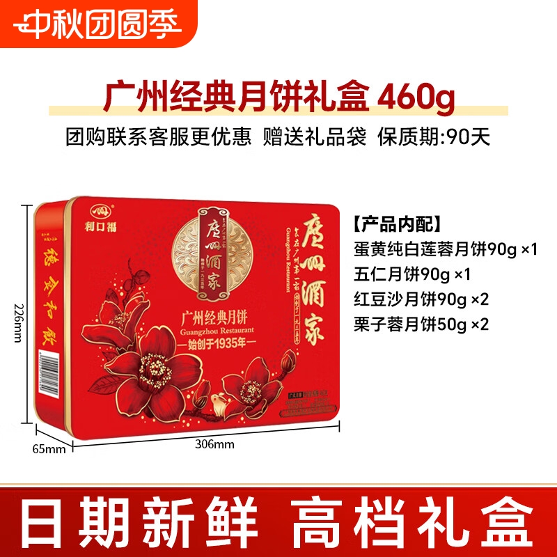 广州酒家利口福广州经典月饼礼盒460g蛋黄白莲蓉广式月饼中秋送礼