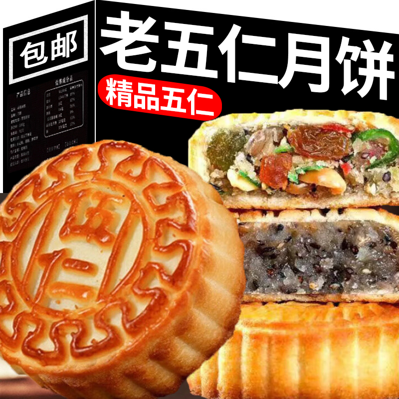 【经典美食】老五仁月饼多口味酥皮月饼传统手工老式中秋月饼礼盒