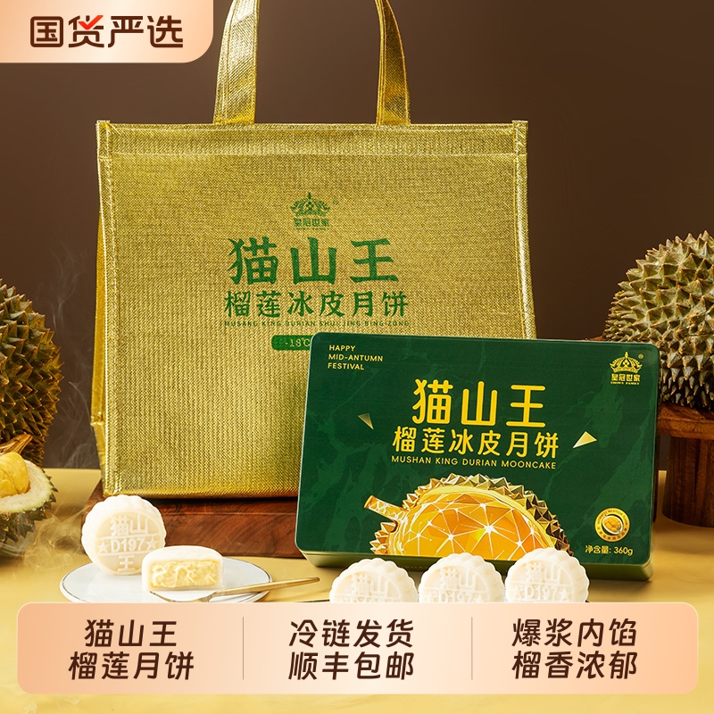 皇冠世家猫山王榴莲冰皮月饼水果流心2025新款中秋节礼品送礼盒装