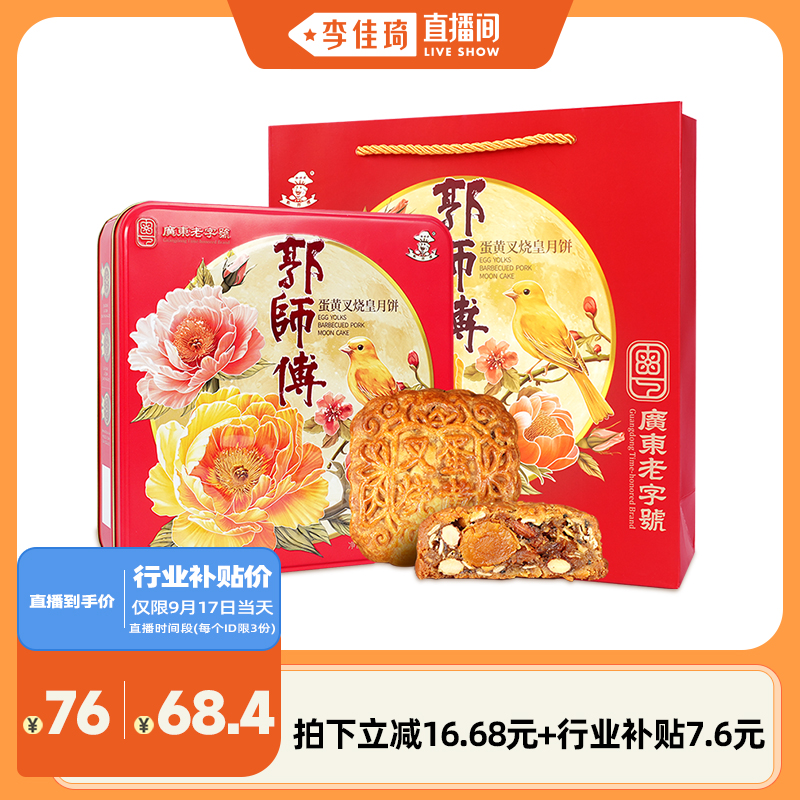 郭师傅月饼广东惠州吉隆广式五仁叉烧皇月饼礼盒装中秋岭南味食品