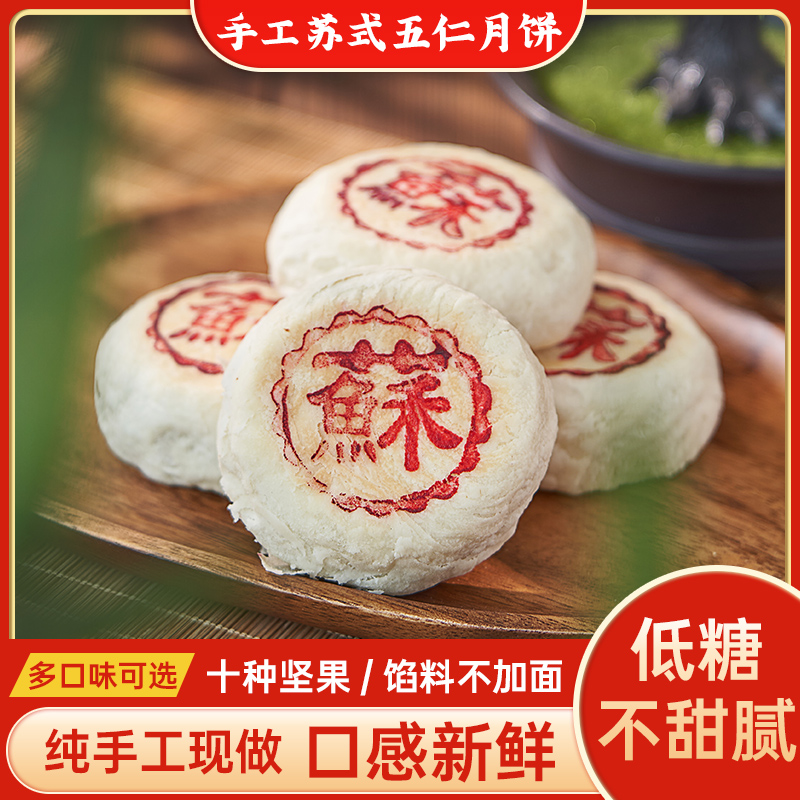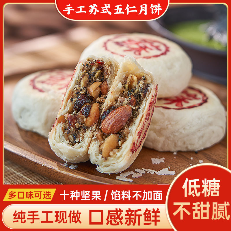 正宗老五仁月饼老式传统口味手工果仁糕点中秋广式老味道现做现发