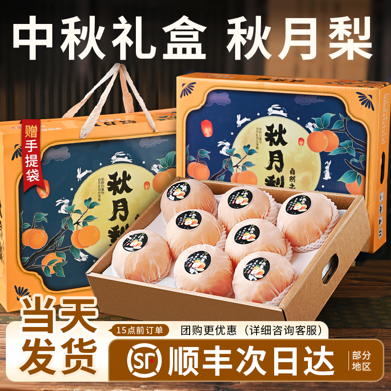 冰糖羊脂秋月梨旗舰店24现摘新鲜正宗河北秋月梨脆甜中秋水果礼盒