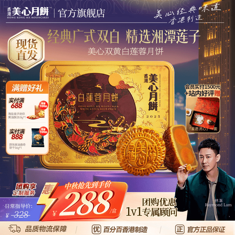 香港美心精选口味月饼礼盒双蛋黄白莲蓉广式月饼中秋节送礼物团购
