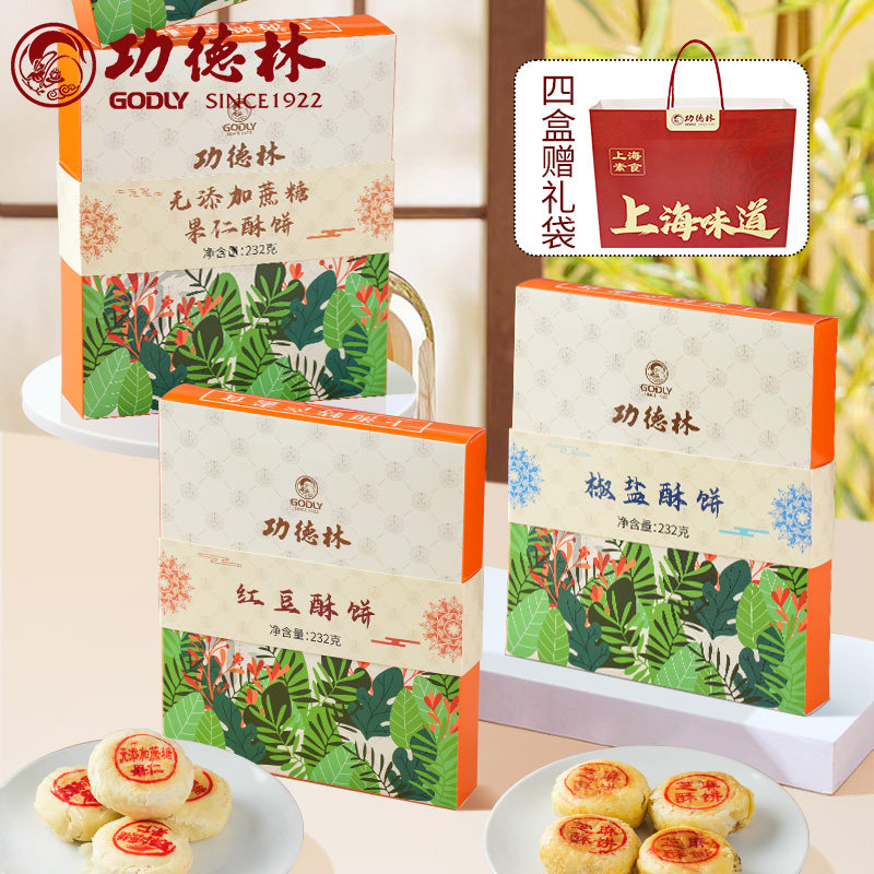 上海功德林苏式月饼散装多口味传统老式豆沙五仁中秋糕点净素礼盒