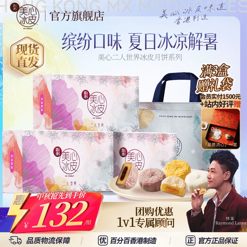 冰皮奶黄流心月饼传统广式港式巧克力抹茶中秋送礼礼品奶香混合