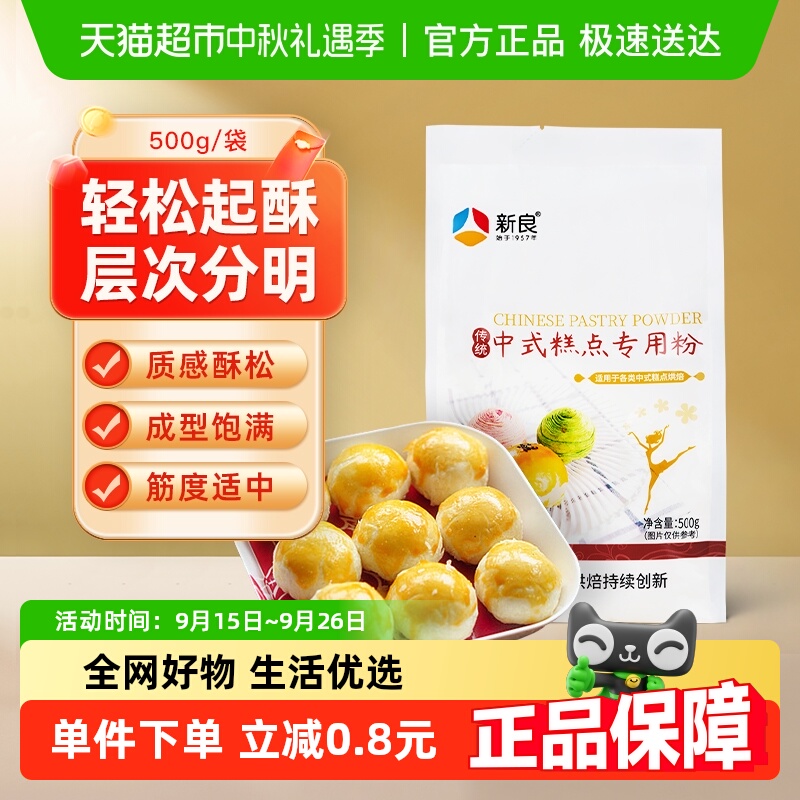 新良中式糕点粉500g中低筋面粉家用苏式月饼老婆饼蛋黄酥烘焙材料