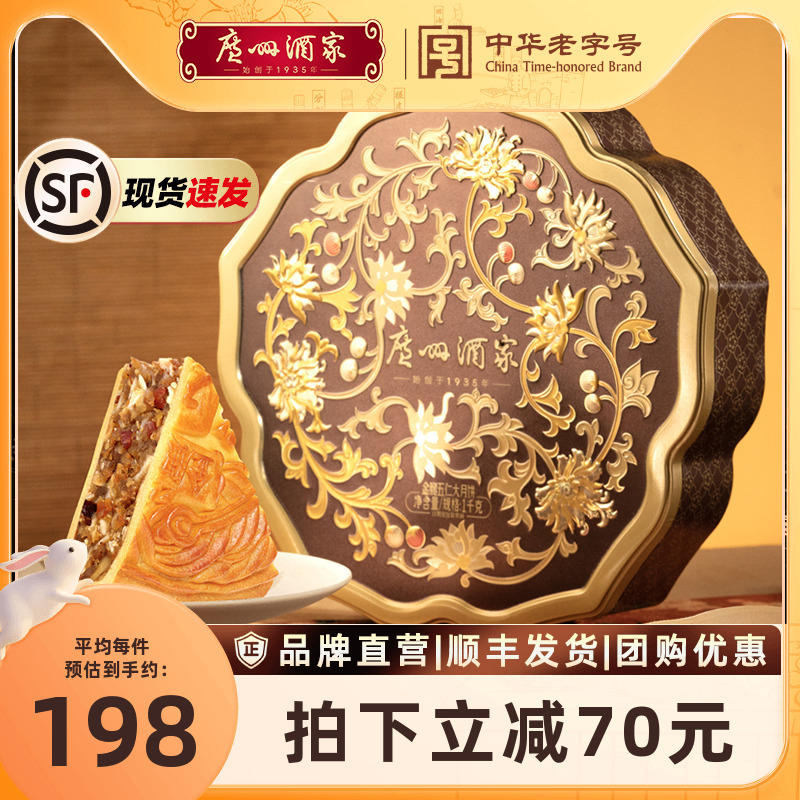 【新鲜现货】梅元居五仁金腿大月饼广式月饼老式伍仁中秋礼盒装