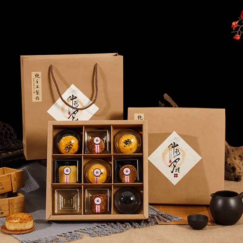 九宫格中秋月饼盒牛皮纸糕点礼盒蛋黄酥9个装流心月饼包装盒定制