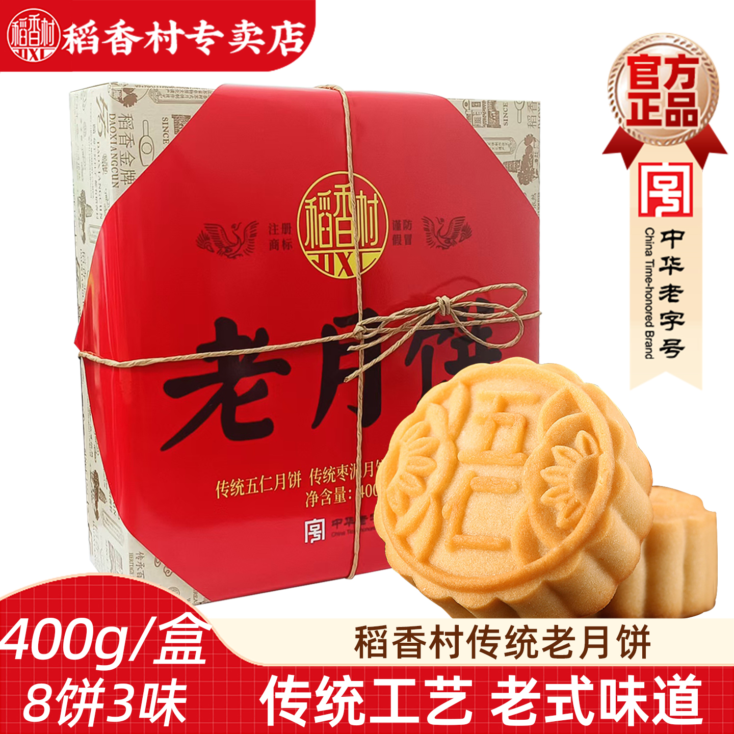 稻香村老月饼400g 传统五仁豆沙枣泥老式中秋月饼礼盒装送老人