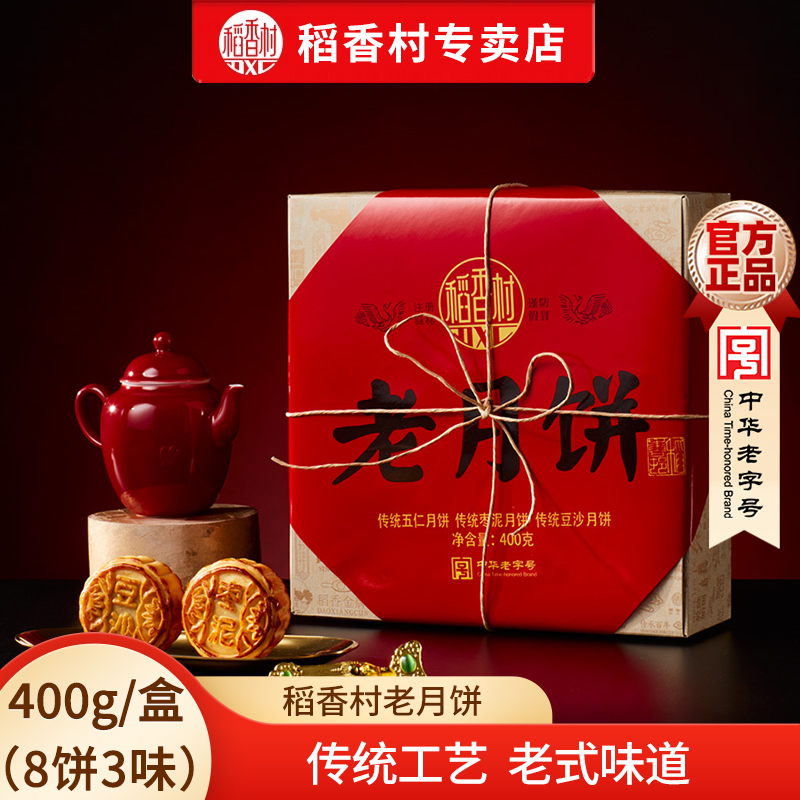 稻香村月饼礼盒老月饼400g老式五仁豆沙枣泥月饼中秋月饼礼盒京式