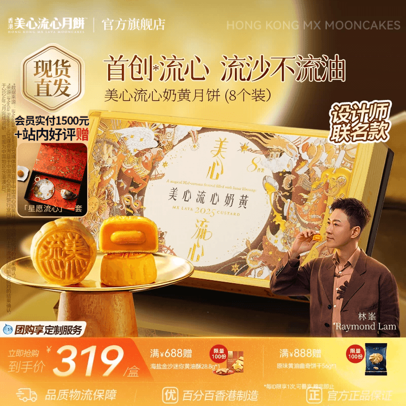 香港美心月饼礼盒装送礼港式特产流心奶黄8个中秋月饼焦糖咖啡