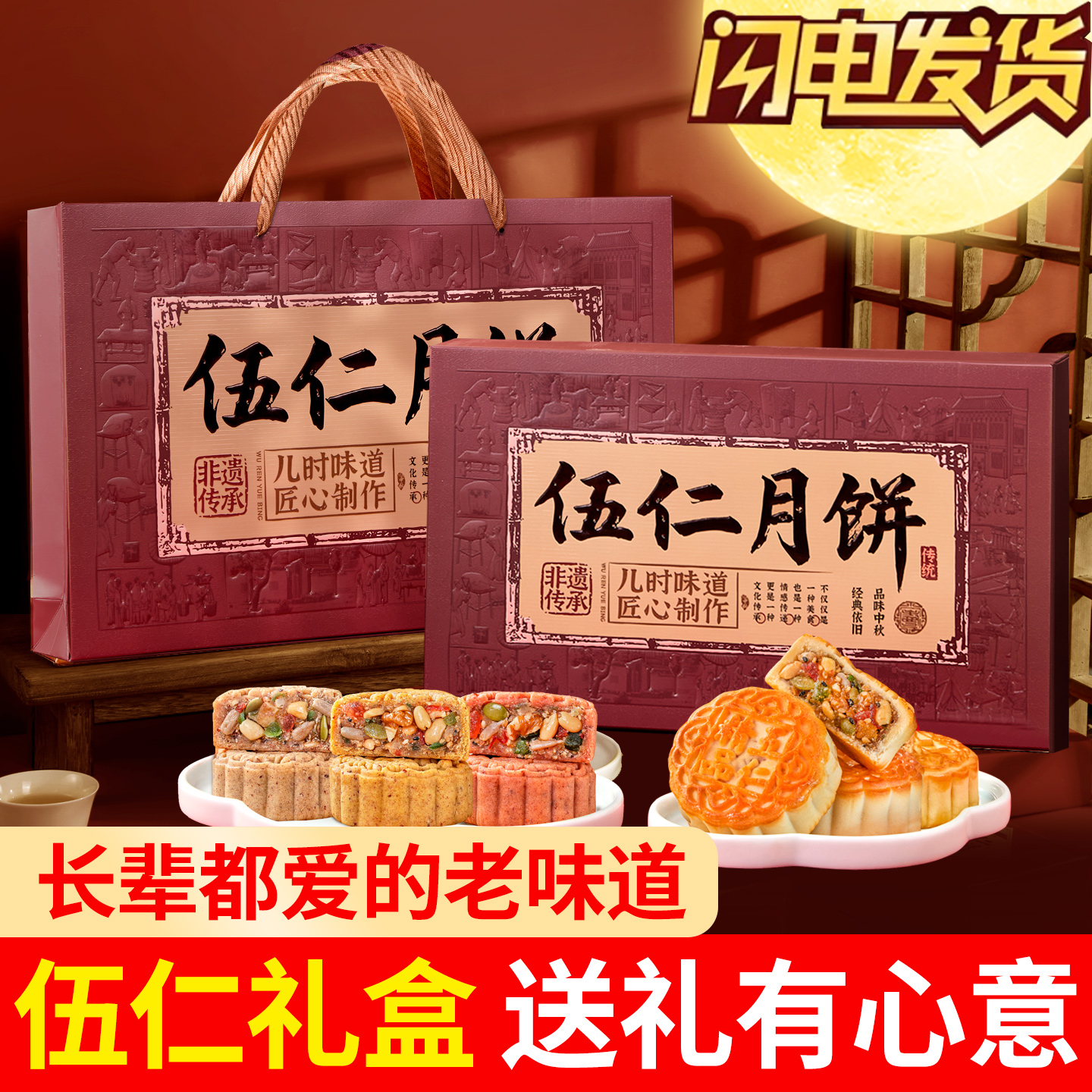苏式五仁月饼礼盒酥皮百果椒盐老式非遗手工多口味中秋节特产礼品