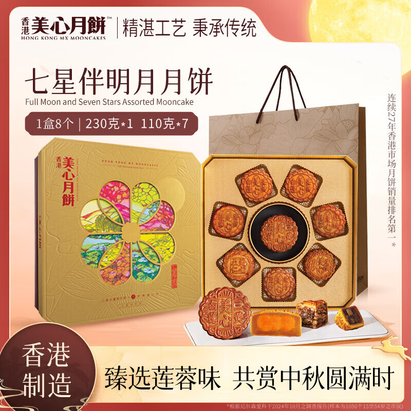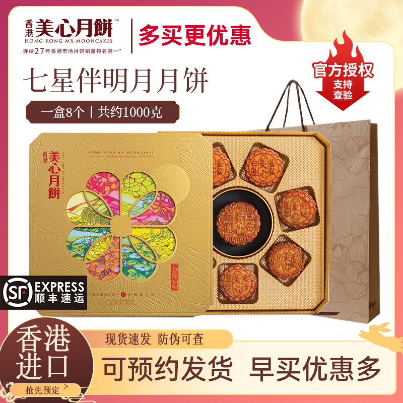 香港美心七星伴明月月饼礼盒蛋黄白莲蓉五仁广式中秋节日送礼品牌