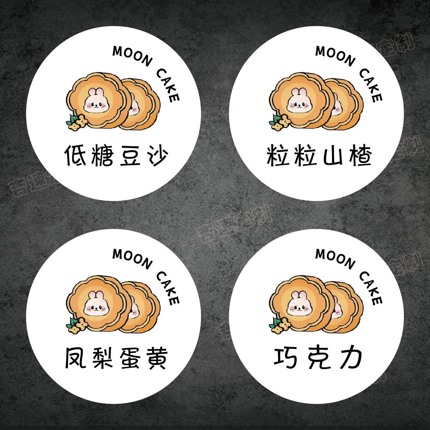 中秋月饼糕点口味贴不干胶标签贴纸小圆形卡通豆沙蛋黄芝麻五仁
