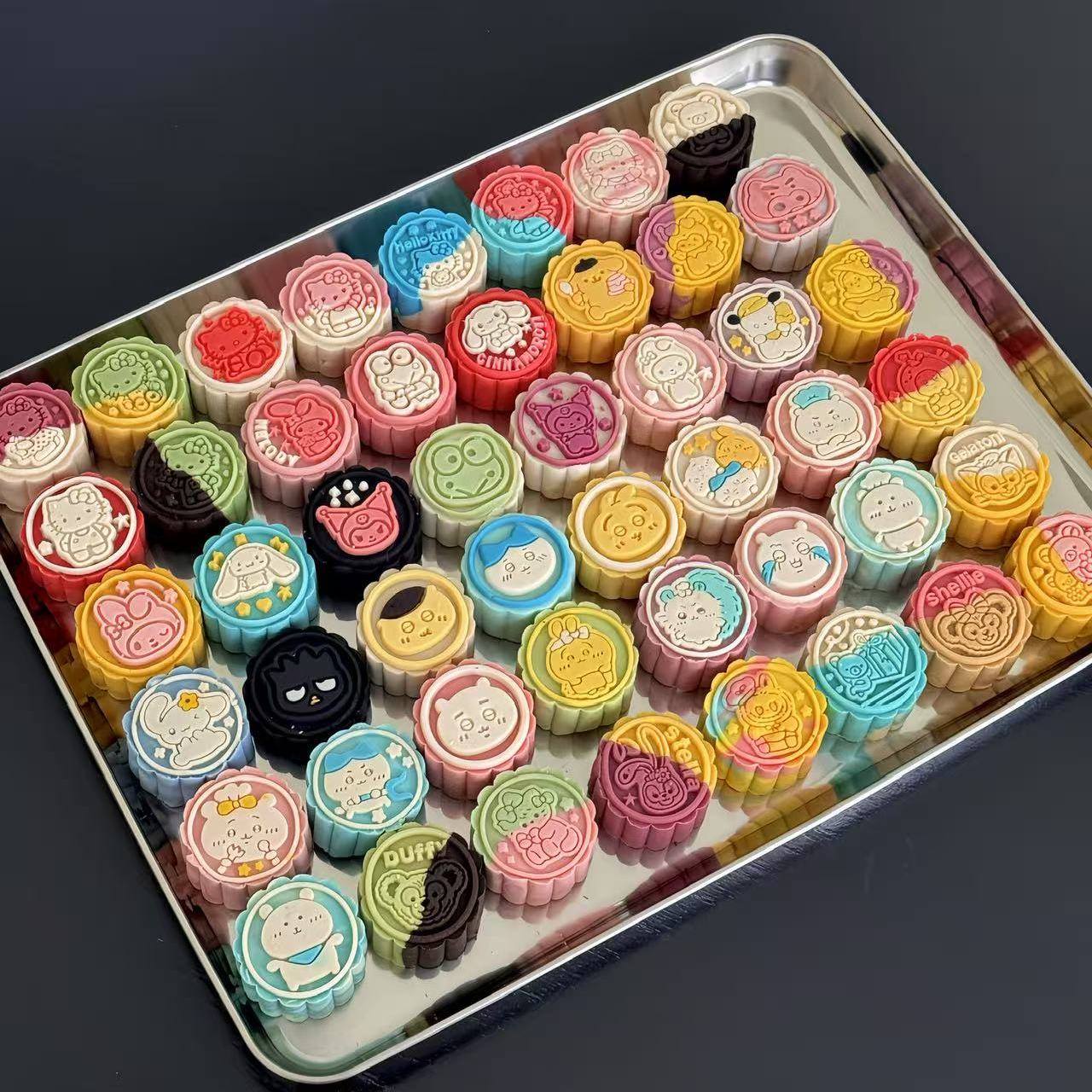 塑料月饼绿豆糕模具 圆形508片韩版卡通月饼模具烘培工具