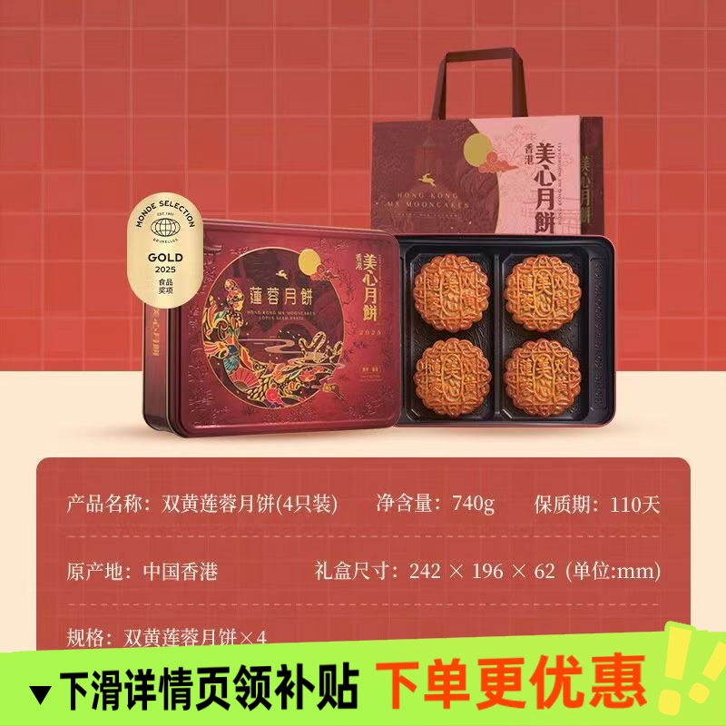 香港美心双黄莲蓉月饼740g 香港制造蛋黄莲蓉