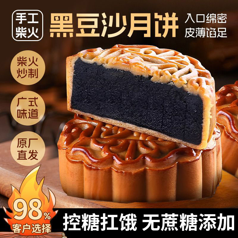 【柴火黑豆沙】正宗手工中秋无蔗糖豆沙广式月饼传统老式糕点批发