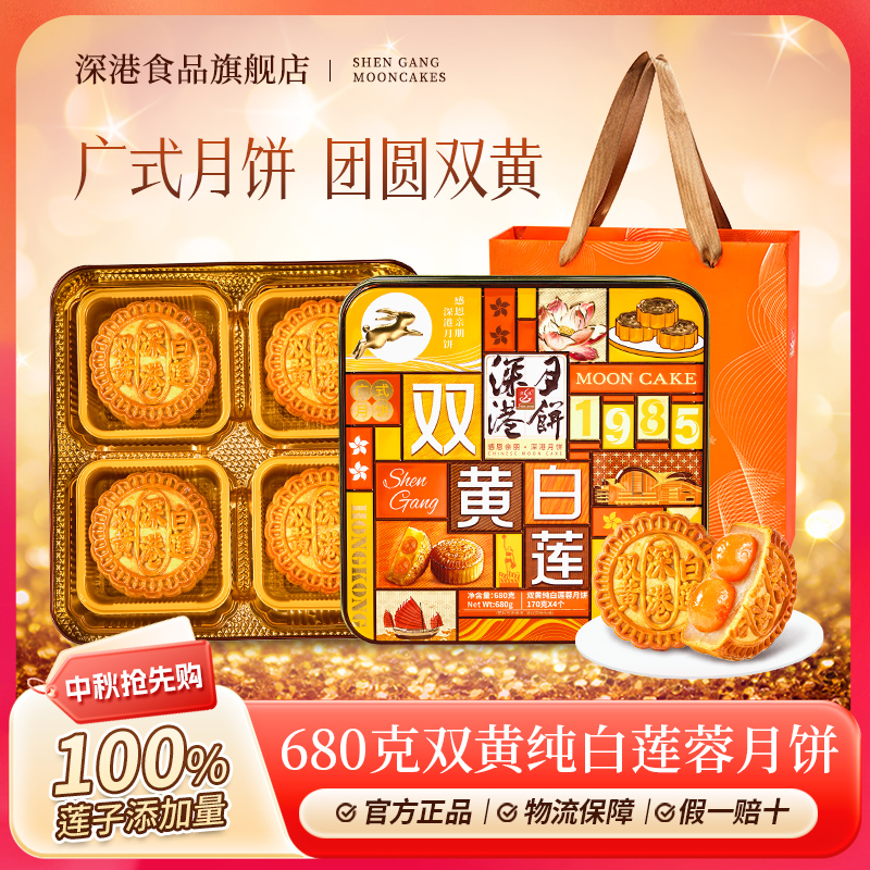 月饼双蛋黄白莲蓉广式礼盒装传统手工中秋节送礼员工团购福利批发