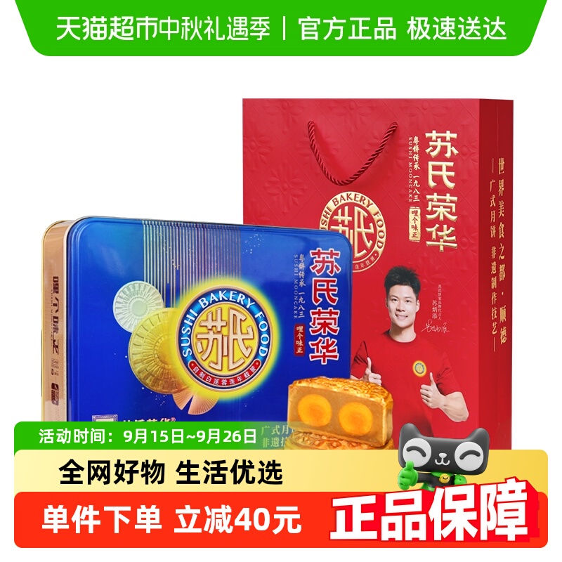 苏氏荣华蛋黄白莲蓉广式月饼中秋月饼礼盒装送礼苏氏糕点点心食品