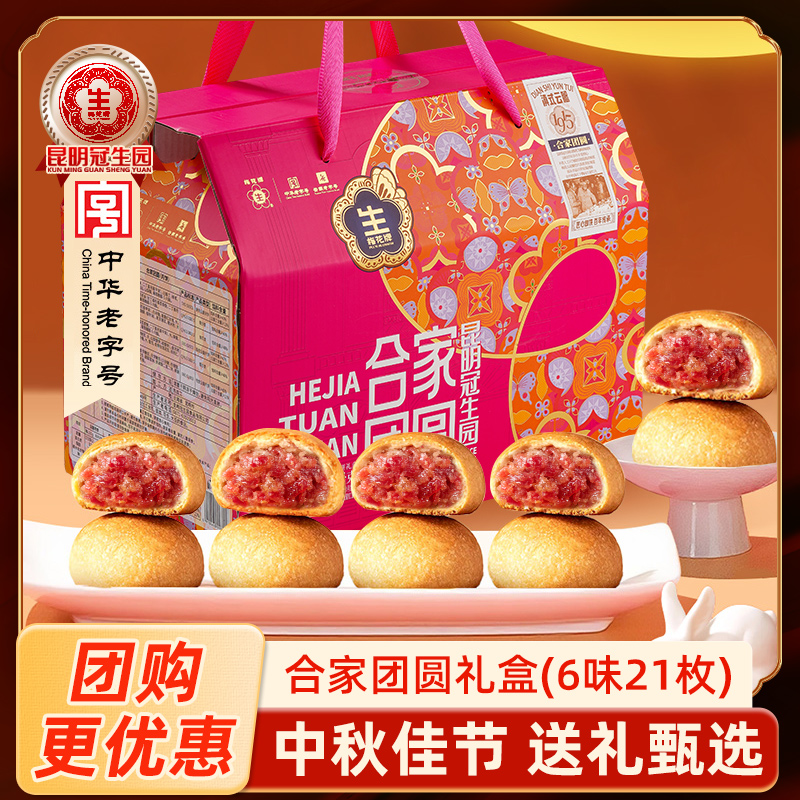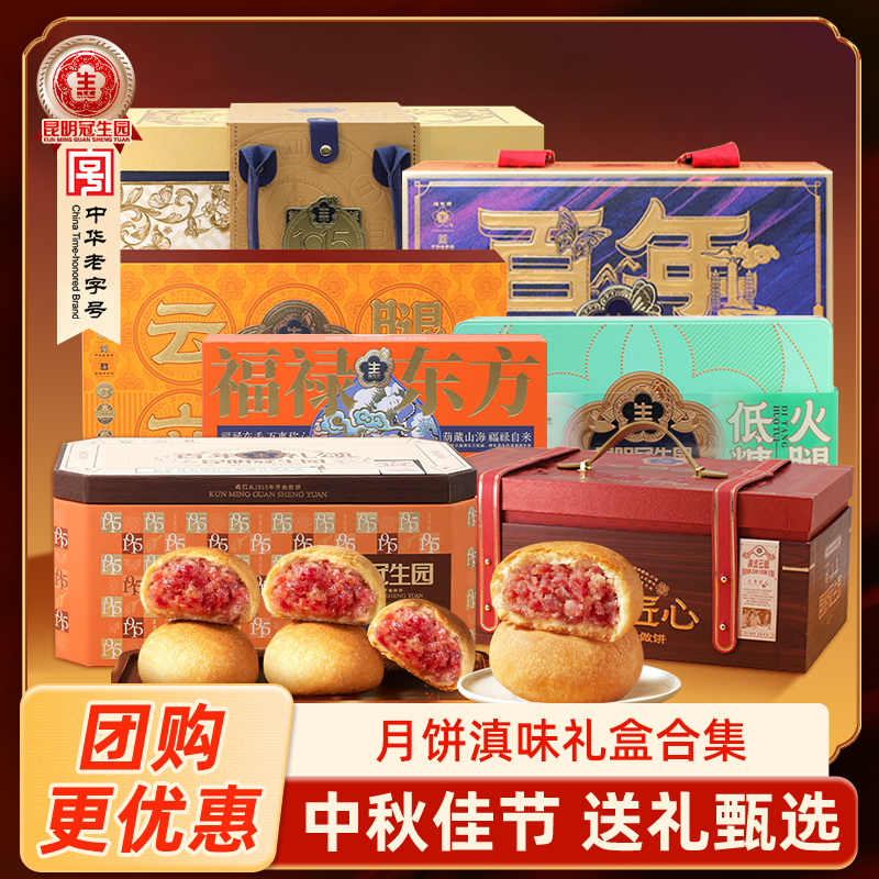 昆明冠生园鲜花饼云腿月饼梅花牌传统滇式糕点心云南特产伴手礼盒