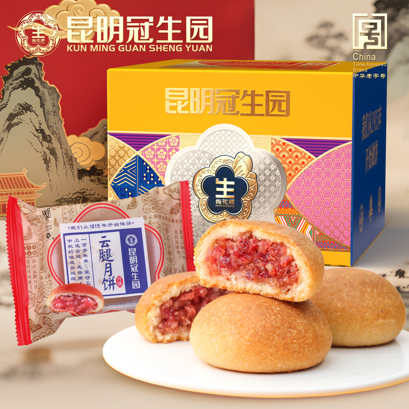 云南特产昆冠梅花牌传统滇式云腿月饼中秋节送礼品酥皮糕点火腿饼