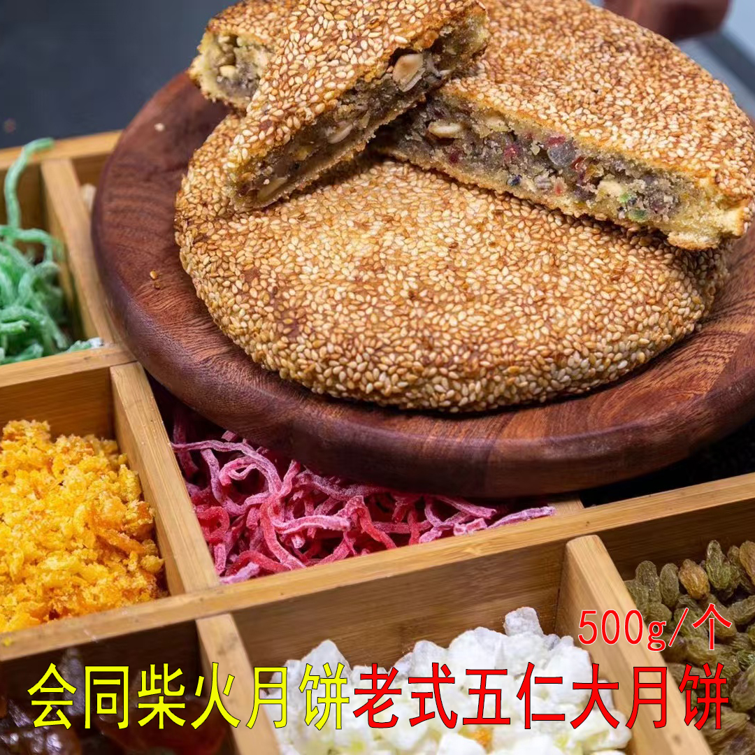 中秋月饼湖南五仁老式大月饼芝麻手工会同靖州麻饼柴火月饼坚果