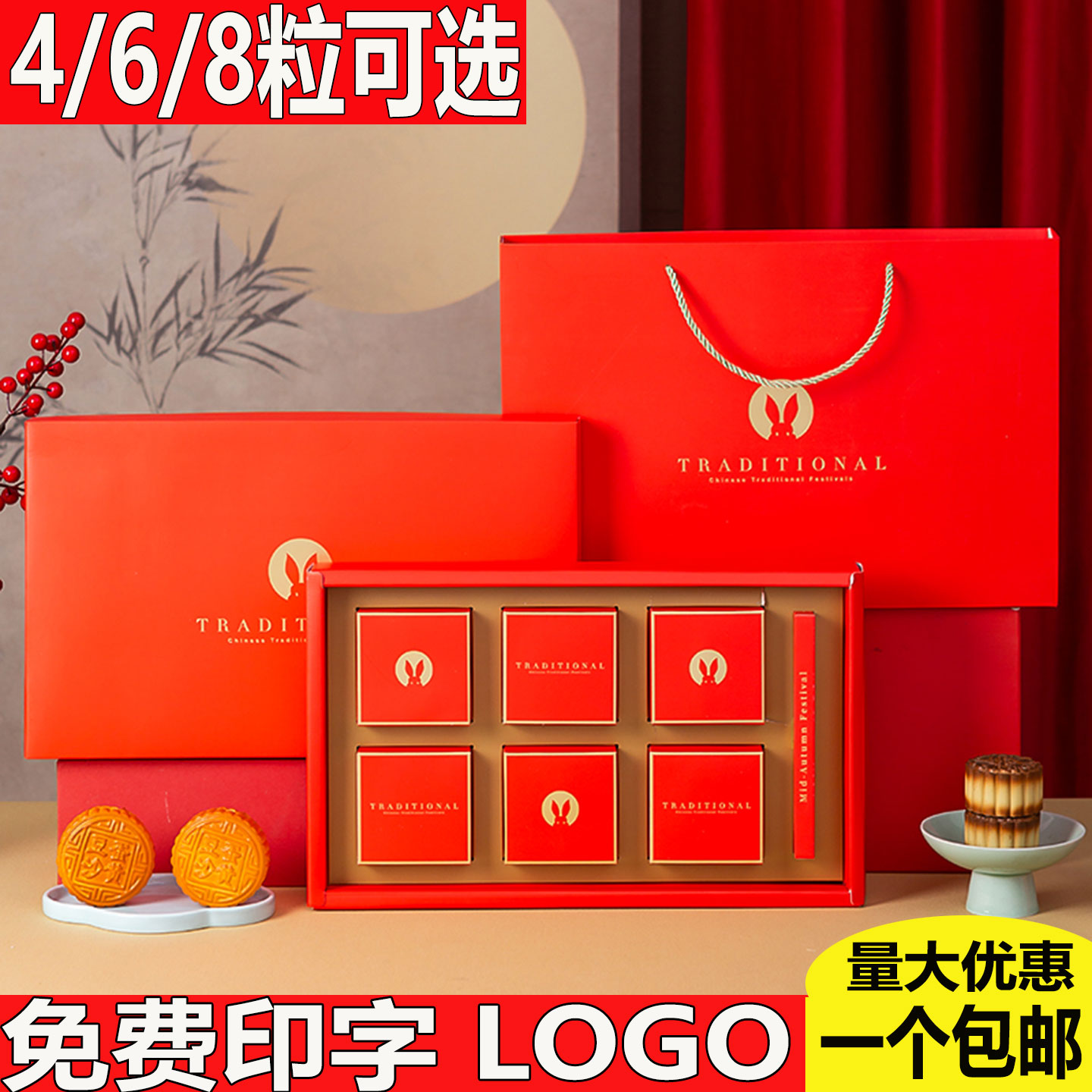 2025中秋月饼礼盒包装盒高档糕点月饼礼盒红色6粒装8粒装酒店通用