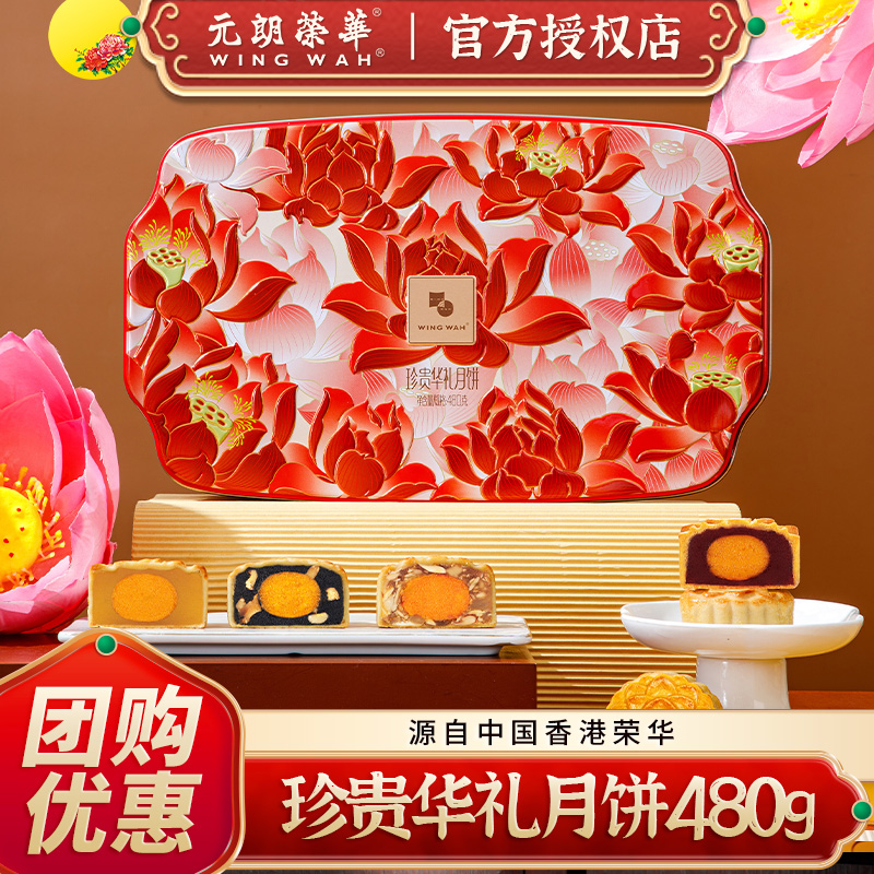 香港元朗荣华金翡翠蛋黄白莲蓉中秋月饼礼盒企业福利