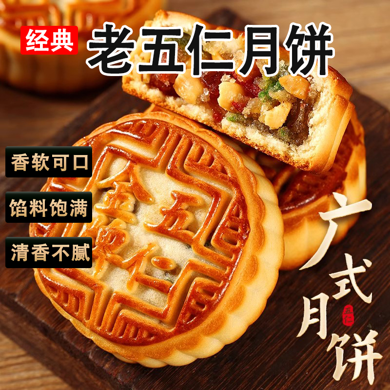 老五仁月饼广式伍仁2斤老式传统手工糕点中秋节零食送人礼品解馋