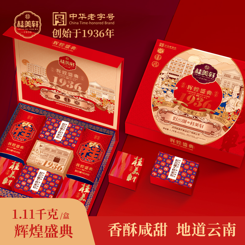 桂美轩象往云南360g礼盒中华老字号中秋团购送礼云南特产火腿饼