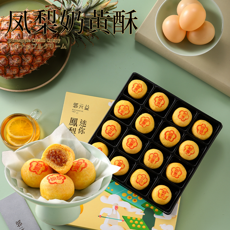 凤小岳联合创作 台湾糕点礼盒郭元益迷你凤梨奶黄酥16入装