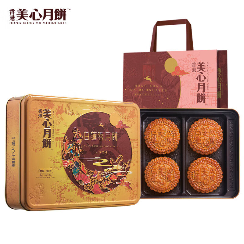 香港美心精选口味月饼礼盒双蛋黄白莲蓉广式月饼中秋节送礼物团购