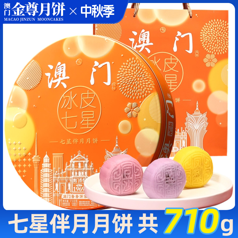 澳门金尊广式冰皮莲蓉水果味月饼中秋送礼品礼盒装官方旗舰店