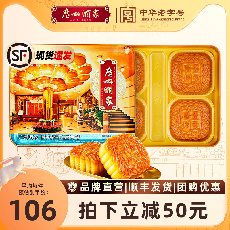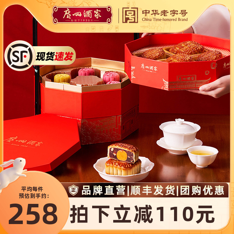 广州官方传统酒家月饼蛋黄莲蓉五仁双黄豆沙礼盒装高档广式送礼