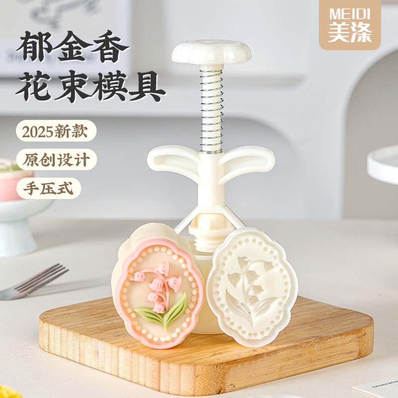 如意坊铃兰花月饼模具50克雏菊百合郁金香花卉桃山皮冰皮绿豆糕