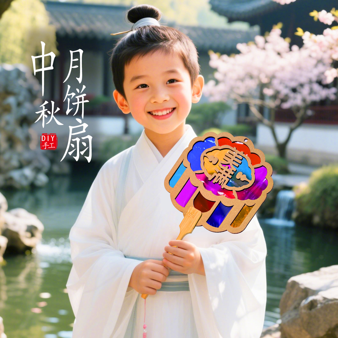 中秋节国风光影月饼团扇手工diy儿童制作材料包瓦楞纸扇子幼儿园