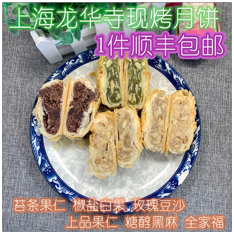 新货上海龙华寺净素月饼玫瑰豆沙果仁苔条果仁月饼椒盐苏式散装旗