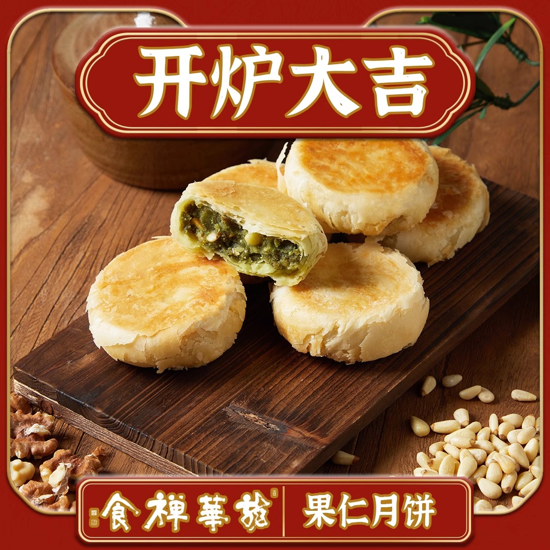 上海龙华现烤月饼 中秋节手工现做净素苔条果仁糕点斋食点心礼盒
