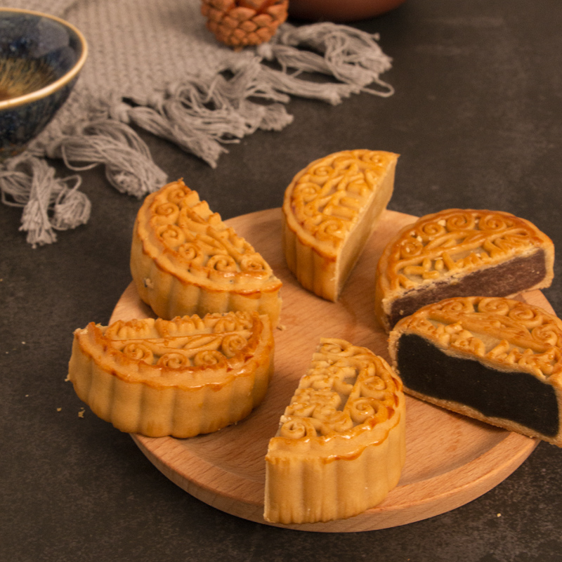 景盛昌广式老式无糖台山手工柴火纯黑豆沙月饼散袋装传统中秋糕点