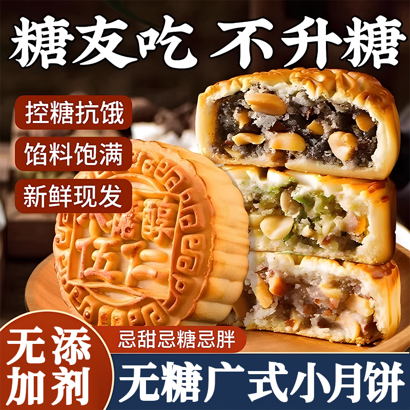 糖尿病患者吃的中秋月饼无蔗糖广式五仁伍糖尿病人老式木糖醇零食