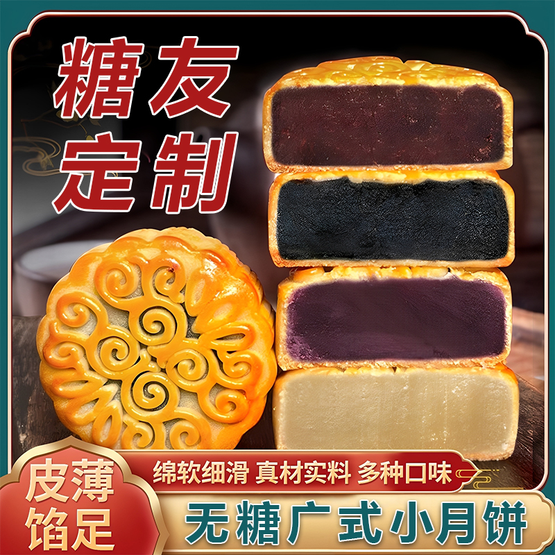 无添加蔗糖紫薯味豆沙多口味老式中秋广式月饼木糖醇无糖精糕点