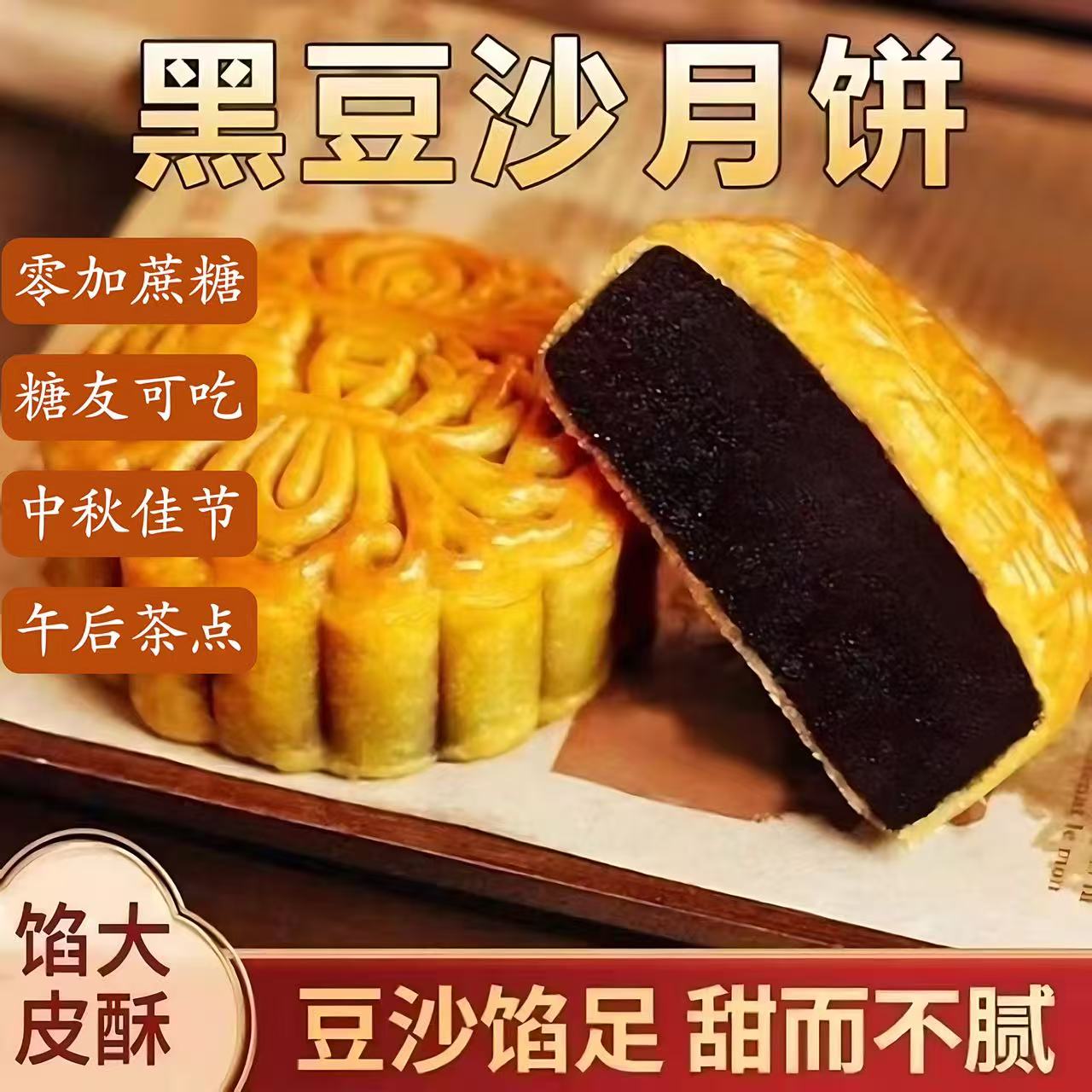 黑豆沙无蔗糖月饼正宗柴火广式木糖醇月饼可吃下午茶无糖点心