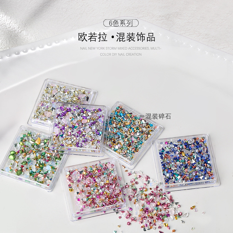 包邮幻彩碎冰水晶白小红书网红美甲饰品幻彩欧若拉极光混合颗粒