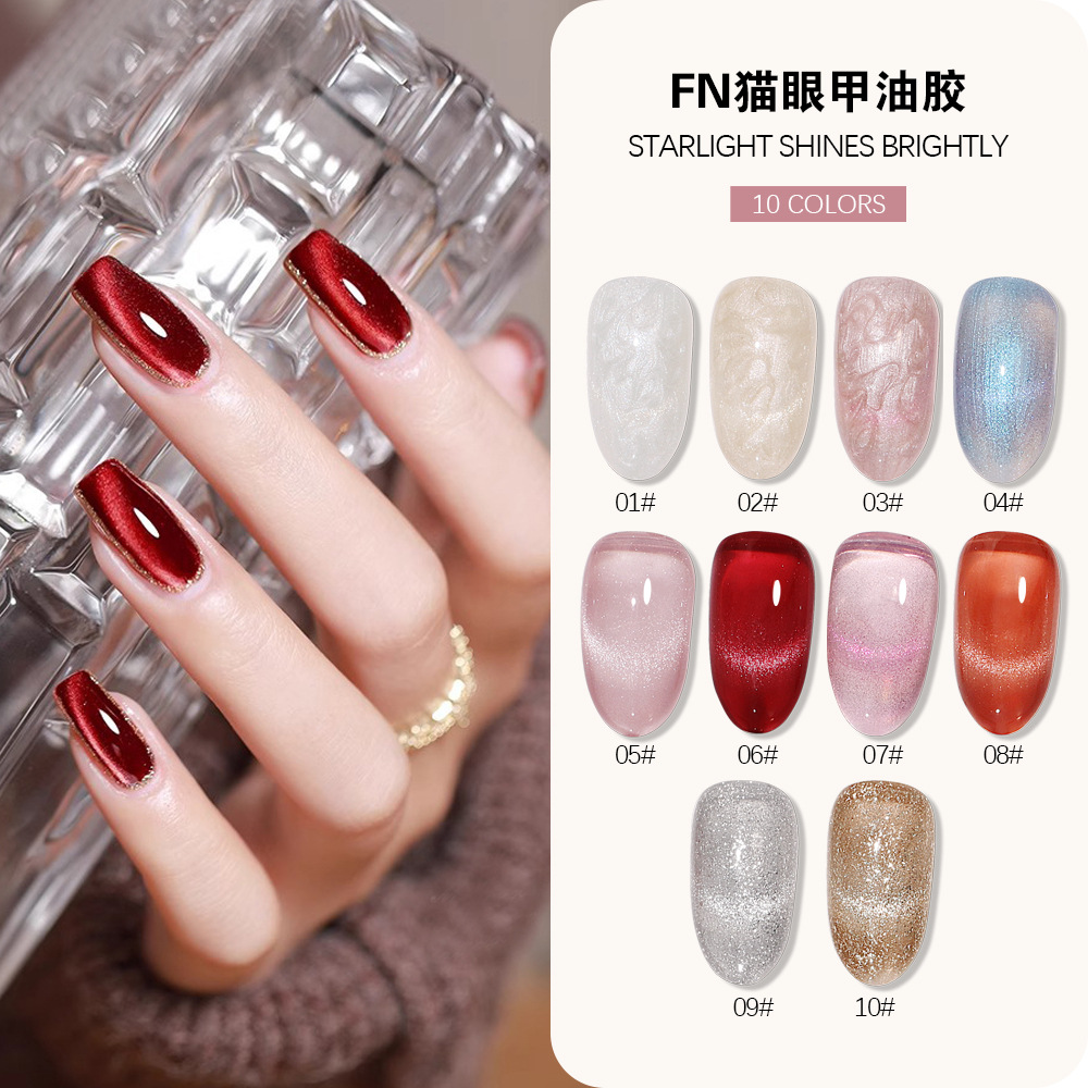 FN新款晶石冰透自带纹理猫眼甲油胶无颗粒感幻彩极光小灯泡猫眼